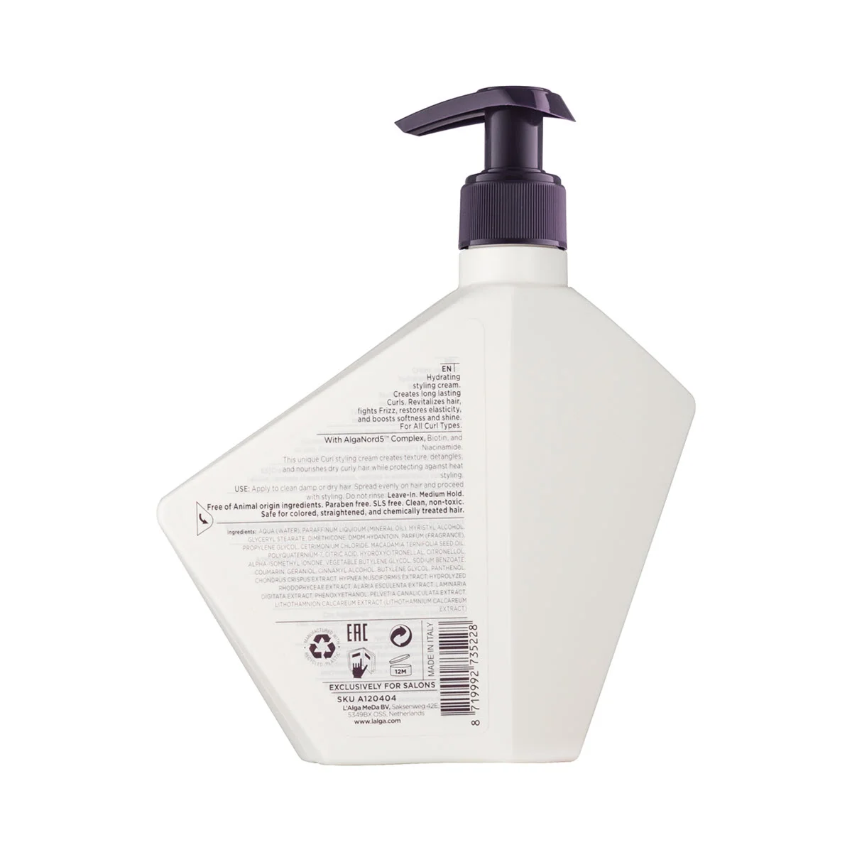 Зволожувальний крем для укладання середньої фіксації. Створює локони та зберігає їхню форму на тривалий час. Ревіталізує та усуває пухнастість, відновлює еластичність, підвищує м'якість і посилює блиск всіх типів кучерявого волосся. Завдяки формулі, збагаченій комплексом AlgaNord5™, біотином та ніацинамідом, цей унікальний крем розплутує і живить сухе кучеряве волосся, підкреслює текстуру та забезпечує захист від пошкоджень під час гарячого укладання.