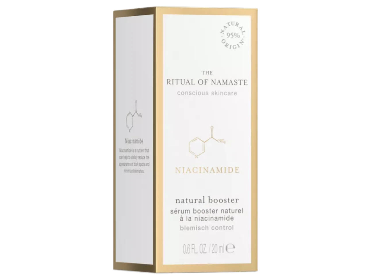 Он минимизирует недостатки, изменения цвета и выравнивает тон кожи, обеспечивая более яркий и свежий цвет лица. Этот ниацинамидный бустер быстро впитывается, если его наносить в качестве основы перед обычной сывороткой и кремом. Ритуал Namaste Ниацинамид природный бустер Помогите своему прекрасному цвету лица оставаться сбалансированным с помощью природного усилителя ниацинамида The Ritual of Namaste. Нанесите этот очень легкий быстро впитывающийся бустер на очищенную и высушенную кожу, чтобы улучшить ее тонус и текстуру. Этот бустер на 95% натуральных ингредиентов является идеальным дополнением к любому уходу – независимо от типа кожи. Ниацинамид – это водорастворимый витамин, также известный как витамин B3, который помогает заметно снизить видимость изменения цвета и минимизировать недостатки кожи и расширенные поры. Легкая и мощная формула делает его идеальным дополнением к любому уходу, вне зависимости от типа.кожи.