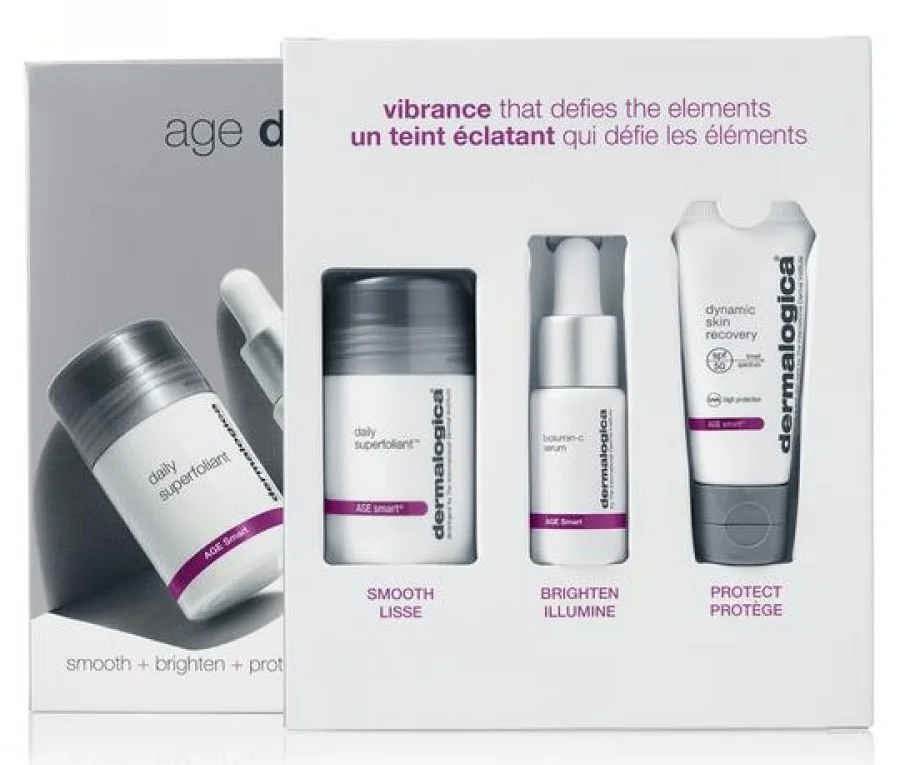 Это трио тревел продуктов является лучшим способом борьбы с преждевременным старением кожи. В наборе: Daily Superfoliant 13G – ежедневный суперфолиант (восстановительная, отшелушивающая пудра-эксфолиант от загрязнений), Biolumin-C Serum 10ml - осветительная сыворотка с витамином С, Dynamic Skin Recovery SPF50 12ml – укрепляющий, смягчающий, увлажняющий крем с защитой от солнца. Преимущества Разглаживает, очищает и защищает от последствий старения кожи. Освещает и укрепляет. Защита широкого диапазона. Применение Используйте утром и вечером. После очищения кожи распределите около половины чайной ложки Daily Superfoliant в очень влажные руки и создайте кремовую пасту, активно потирая руки. Наносите на лицо круговыми движениями, избегая зоны вокруг глаз. Слегка помассируйте в течение одной минуты, затем тщательно промойте теплой водой. Нанесите пару капель сыворотки Biolumin-C и разгладьте по чистой коже лица и шеи. Затем нанесите Dynamic Skin Recovery SPF50 днем, а вечером нанеситеваш любимый увлажняющий крем.