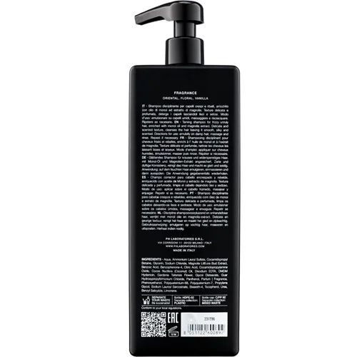 Шампунь для укрощения пушящихся непослушных волос обогащен маслом моной и экстрактом магнолии. Деликатно очищает, делает волосы гладкими и шелковистыми, оставляя на нем легкий, приятный аромат. Уплотняет текстуру волос, облегчает расчесывание и существенно сокращает время укладки. Активные ингредиенты: – Масло моной богата витамином Е, сокращает образование свободных радикалов и замедляет процессы старения. Питает, увлажняет и кондиционирует волосы, облегчает расчесывание, придает блеск и мягкость, уменьшает пушистость. Масло моной также оказывает защитное действие, препятствует потере влаги, предотвращает ломкость волос и образование секущихся кончиков. - экстракт магнолии • содержит фенольные соединения, в том числе магнолол и хонкиол, которые являются мощными антиоксидантами с успокаивающими и увлажняющими свойствами. Они способствуют повышению эластичности волос, защищают структуру, делают их здоровыми иблестящим. Аромат: Верхние нотки • восточные • аромат строится вокруг изящного медового аккорда, дополненного нотами красных апельсинов и чувственных белых цветов. Средние нотки • цветочные груша и жасмин добавляют лета в композицию. Базовые нотки • ваниль • нотки ванили, пачули и элегантного белого мускуса придают полноту аромату. Применение: нанесите на влажные волосы массирующими движениями, смойте. Повторите при необходимости.