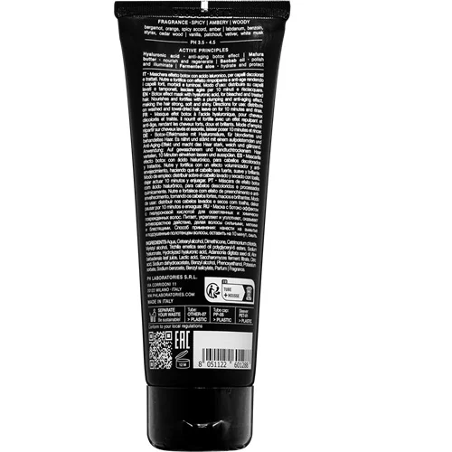 Маска с эффектом ботокса, обогащенная гиалуроновой кислотой, для обесцвеченных и поврежденных волос. Питает и укрепляет волосы, оказывая уплотнительное и антиэйдж-действие. Делает волосы сильными, мягкими и блестящими. рН 3.5 – 4.5 АКТИВНЫЕ ИНГРЕДИЕНТЫ: • Гиалуроновая кислота: глубоко увлажняя структуру волос, оказывает антиэйдж ботокс-эффект. Укрепляет и реструктурирует волосяной стержень, образует защитную пленку, препятствующую испарению влаги. В результате волосы становятся более устойчивыми к ломкости, приобретают блеск и упругость. • Масло мафуры: богато незаменимыми жирными кислотами (такие как олеиновая, пальмитиновая и линолевая), является прекрасным кондиционером для сухих волос, питает их и способствует регенерации, восстанавливая поврежденные кончики. Глубоко питает кожу головы и помогает поддерживать нормальный рост волос. • Масло баобаба: благодаря высокому содержанию незаменимых жирных кислот, витаминов С и Е имеет мощные увлажняющие, питательные ирегенерирующие свойства. Эффективно препятствует сухости, ломкости и потере блеска. Богата антиоксидантами, которые нейтрализуют активность свободных радикалов. Полирует поверхность волосяного стержня и усиливает яркость цвета. • Ферментированное алоэ: новое активное косметическое вещество, полученное в результате инновационного процесса гиперферментации. Эта запатентованная технология превращает простые сахара в метаболиты косметической важности, способные поддерживать увлажнение волос, даже если они подвергаются длительному термическому стрессу. АРОМАТ: Верхние ноты – пряные: бергамот, апельсин, пряный аккорд, амбра Ноты сердца – амбровые: лабданум, бензоин, стиракс, кедр Базовые ноты – древесные: ваниль, пачули, ветивер, белый мускус. Применение: распределите равномерно легкими массирующими движениями по вымытым, подсушенным полотенцем волосам. Для лучшего распределения разделите волосы на пряди. Оставьте на 10 минут, затем тщательно смойтетеплой водой.