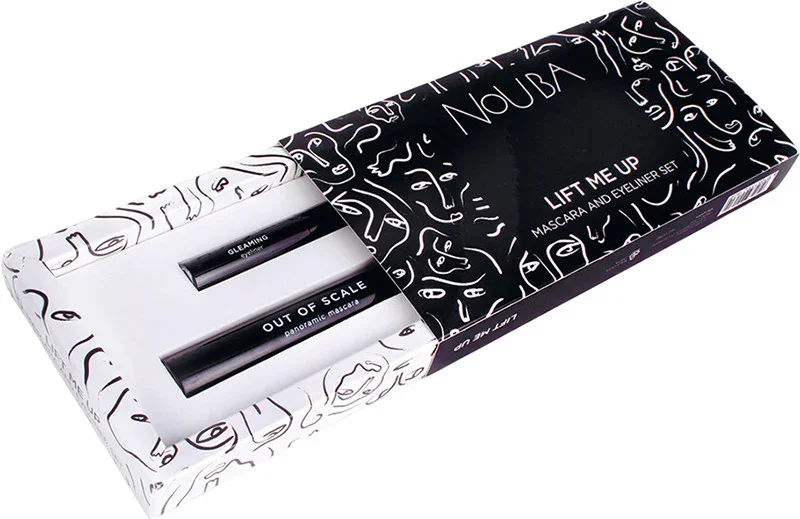 Состав набора: Nouba Out of Scale - Панорамная тушь для ресниц, 12 мл Прекрасная тушь, которая подкручивает ресницы и придает им объем. Даже тончайшие ресницы она сделает великолепными. Специальная бимодальная щеточка придает ресницам элегантный изгиб, а легкая кремовая консистенция туши обеспечивает эффект наращивания. Чтобы добиться максимального эффекта, смело наносите несколько слоев. После нанесения тушь быстро высыхает, стойко держится в течение дня, не размазывается и не осыпается. Для ее удаления достаточно теплой воды. Формула обогащена витамином В5 с восстановительным и укрепляющим действием. В составе нет ароматизаторов, парабенов, триэтаноламина, D5. Продукт прошел дерматологическое тестирование. Nouba Gleaming Eyeliner Black — Черная блестящая подводка для глаз, 4 мл Яркая насыщенная подводка с необычным глянцевым финишем. Благодаря очень гибкому фетровому аппликатору и ультралегкой консистенции она точно наносится, образуя четкую тонкую линию. Толщину легковарьировать, изменяя силу нажатия.