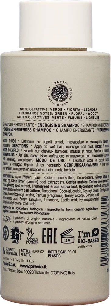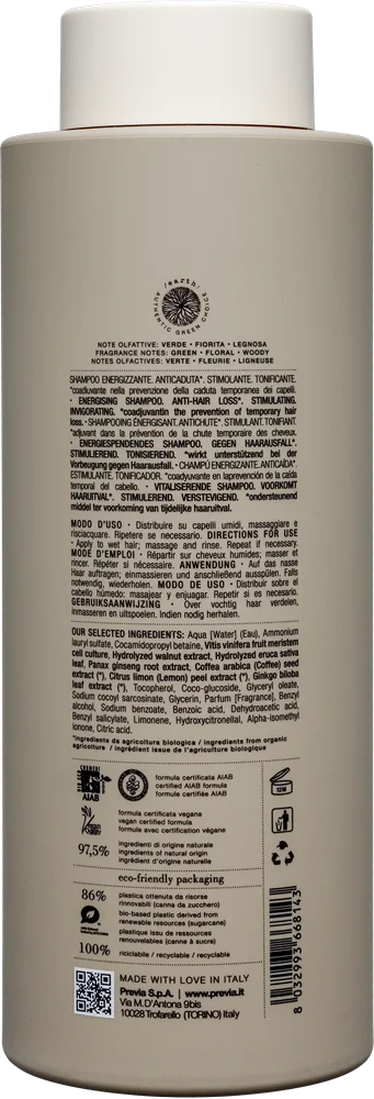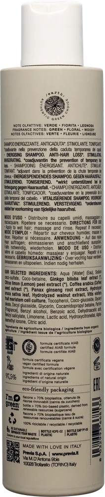 Энерджайзинг шампунь против выпадения волос обогащен стволовыми клетками красного винограда. Кроме этого средство содержит биоснижающие семена рукколы и зеленого грецкого ореха, а также комплекс протеинов и экстракта клевера. Продукт стимулирует и тонизирует кожу головы, предотвращает выпадение волос, мягко очищает шевелюру. Преимущества Previa Organic Vitis Vinifera Energising Shampoo: помогает уменьшить выпадение волос, увеличивает жизненный цикл волосков; тонизирует фолликулы и кожу головы, улучшает микроциркуляцию; регулирует развитие волосяных фолликул. Аромат шампуня начинается с ярких ноток кумквата и ментола, соединенных с зеленым дождем листьев плюща и сушеного алоэ. Средние нотки – жасмина вместе с легким ароматом бамбука и нотками цветов лилии, с фруктовым ароматом сливы и острым ароматом перца. И в завершении композиции обволакивающий аромат ливанского кедра и мадагаскарского розового дерева, листьев мате и бальзамического.аромат кедра. Все косметические средства Previa выпускаются: без сульфатов, без DEA/TEA/MEA/, без EDTA, без PEG/PPG, без тиазолина, без парабенов, без искусственных красителей, без минерального масла, без ланолина, без бензофенона, без карбомида и имидазолидинила. Способ применения: Нанесите шампунь Превия на влажные волосы массирующими движениями, оставьте на 1-2 минуты, тщательно смойте. Повторите, если нужно. Состав: aqua (water), cocamidopropyl betaine, glycerin, cocamidopropylamine oxide, parfém (fragrance), hydrolyzed eruca sativa leaf, hydrolyzed walnut extract, trifolium pratense extract (trifolium pratense (clover) flower extract), urtica нефтяной) лист extract), vitis vinifera list extract (vitis vinifera (grape) list extract), vitis vinifera meristem fruit cell culture, acetyl tetrapeptide-3, butylene glycol, caffeine, цитрик acid, dextran, guar hydroxyprop alternifolia oil (melaleuca alternifolia (tea tree) leaf oil), menthol, myristyl alcohol, niacinamide, panthenol, phenoxyethanol, piroctone olamine, polyquatemium-7, potassium sorbate, sodium benzoate, sodium myristo salicylate, hexyl cinnamal, hydroxycitronellal, limonene.
