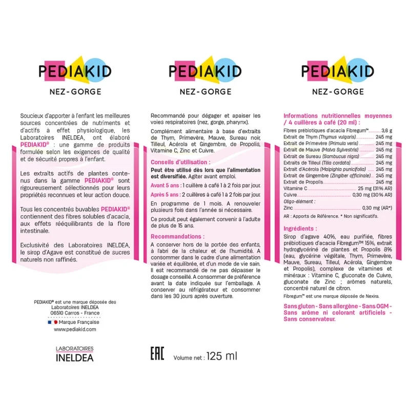 PEDIAKID СИРОП ДЛЯ ЗНЯТТЯ ЗАПАЛЕННЯ НОСА ТА ГОРЛА / NEZ-GORGE, 125 мл