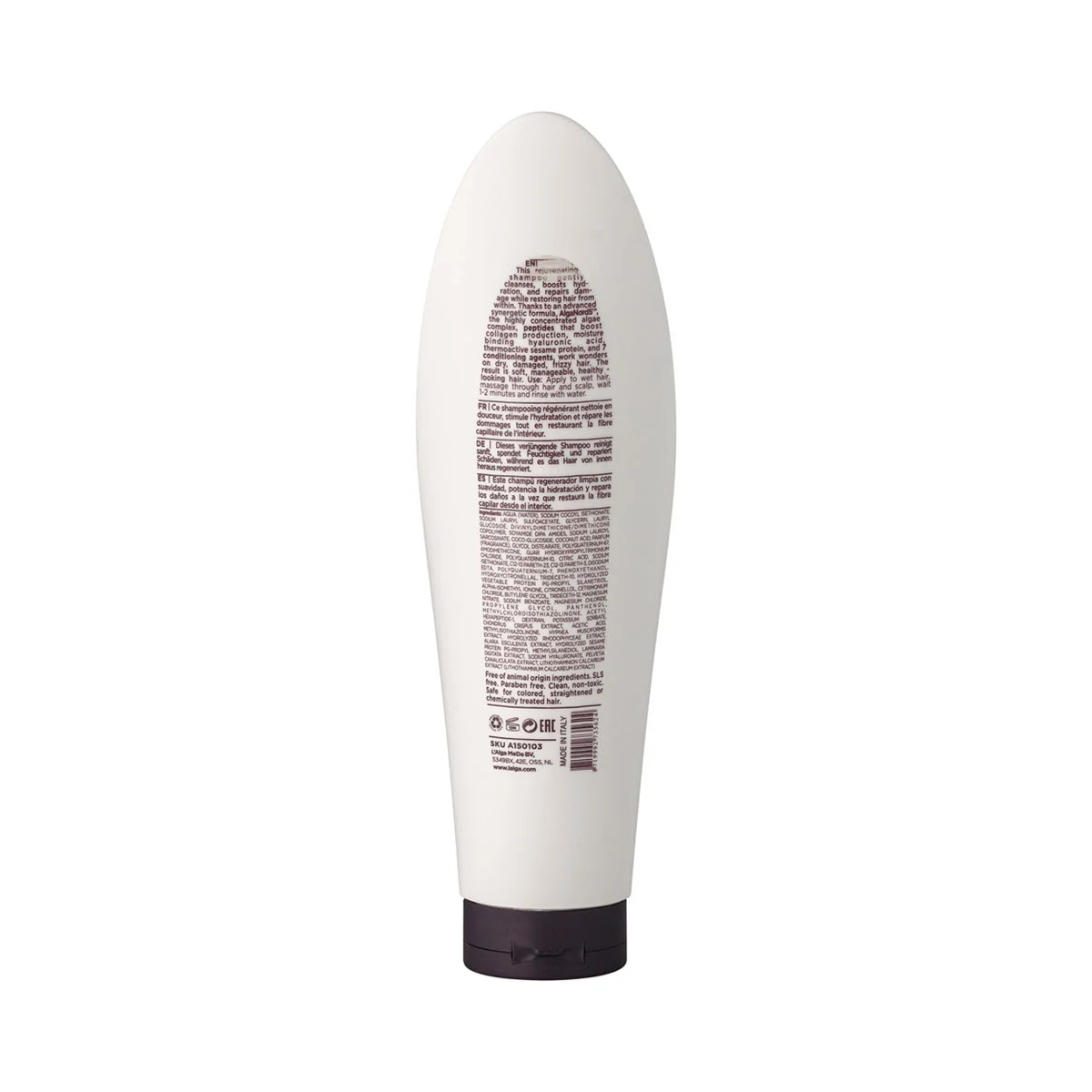 Інноваційна синергетична формула з висококонцентрованим комплексом AlgaNord5™, пептидами, які стимулюють вироблення колагену, гіалуроновою кислотою, термоактивним кунжутним протеїном та 7 кондиціонувальними речовинами суттєво покращує стан сухого, пошкодженого і пухнастого волосся. Надає надзвичайної м'якості, повертає волоссю здоровий вигляд та робить його слухняним.