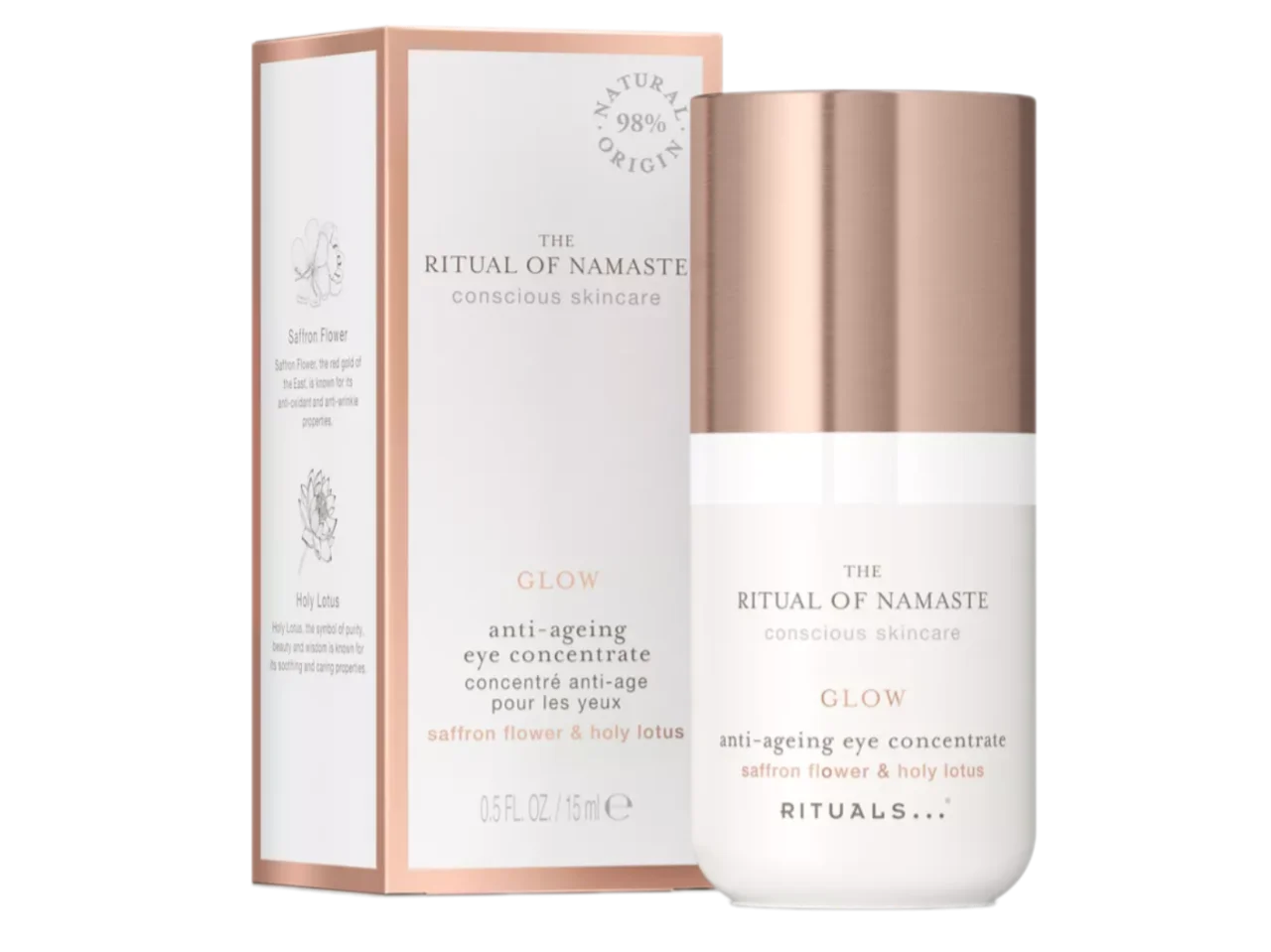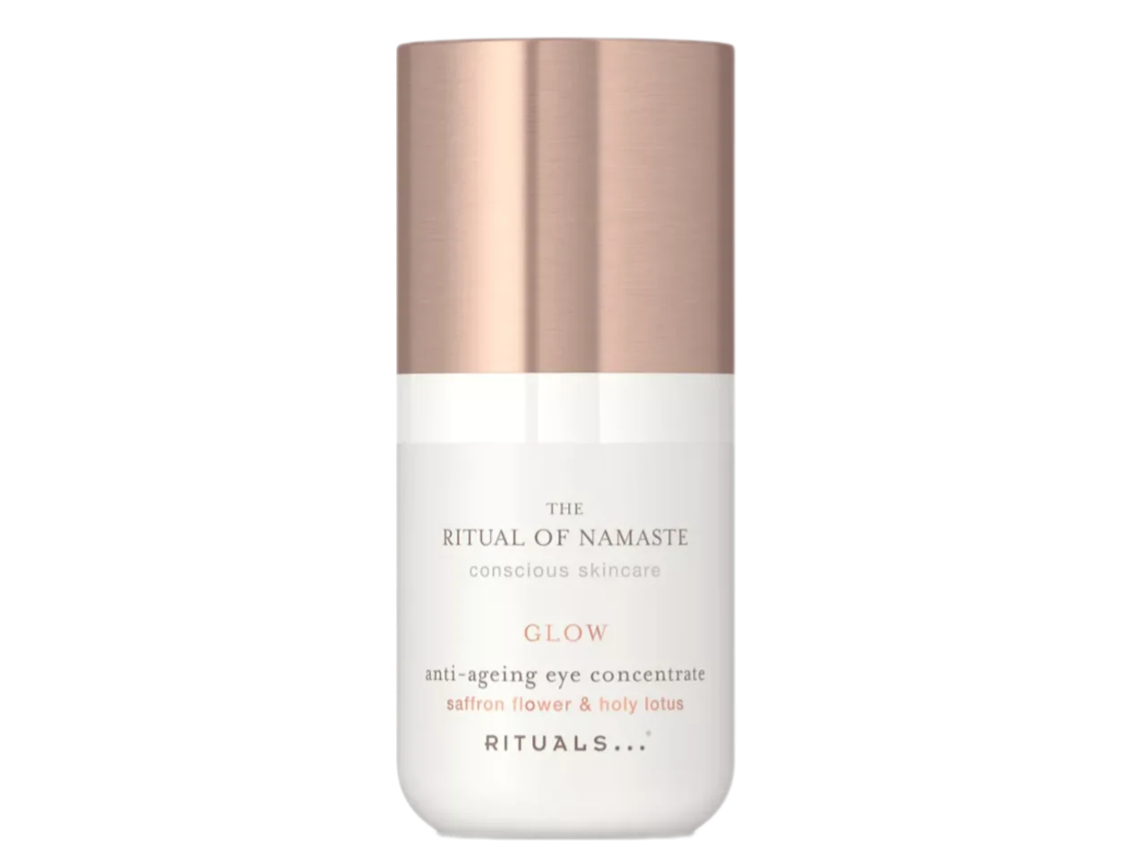 Підкресліть своє внутрішнє сяйво за допомогою антивікового крему для очей від The Ritual of Namaste. Інтенсивне введення вологи бореться з першими ознаками старіння та допомагає зменшити видимість гусячих лапок і глибоких зморшок. Крем під очі також містить такі компоненти, як квітка шафрану, відома своїми антиоксидантними властивостями та властивостями проти зморшок.