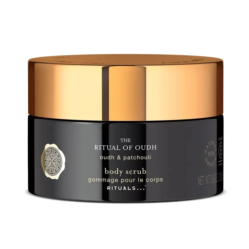 Відлущуйте шкіру за допомогою нашого скрабу для тіла The Ritual of Oudh, який містить 93% інгредієнтів натурального походження. Формула, заснована на розкішному поєднанні цукру з ретельно підібраною основою насичених масел, збагачена ароматом уду і пачулі. Нанесіть скраб на вологу шкіру, щоб видалити тьмяні, сухі шари, стимулювати оновлення клітин, покращити зовнішній вигляд шкіри та кровообіг. Завершіть процедуру краси, що живить шкіру, кремом для тіла The Ritual of Oudh. Пілінг містить 93% ретельно відібраних інгредієнтів натурального походження для забезпечення оптимальної користі для шкіри.