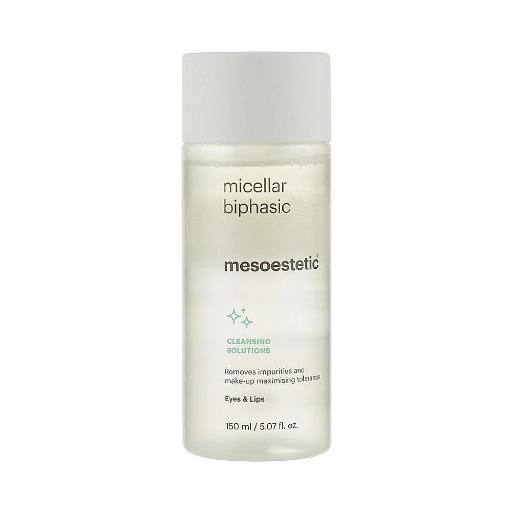Двофазна міцелярна вода Mesoestetic Micellar Biphasic – це інноваційна лінійка продуктів, розроблена для ефективного очищення шкіри, нормалізації рівня рН та балансу мікрофлори, а також захисту від забруднень довкілля. Продукти адаптовані для всіх типів шкіри, їх старанно підібрана текстура та діючі речовини призначені для очищення, відновлення балансу шкіри та виконання інших специфічних функцій. Засіб для очищення шкіри обличчя, у тому числі зони навколо очей та губ.