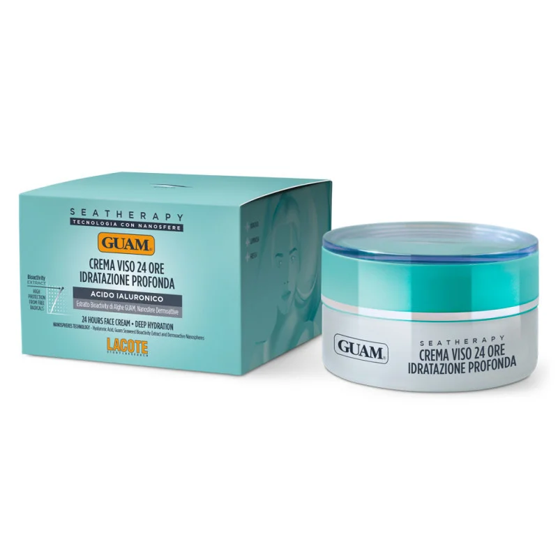 Гіалуронова кислота – це натуральна речовина, яка знаходиться в різних тканинах людського організму, дуже важливий компонент шкіри, недостатність якого негайно відбивається на стані шкіри і стає причиною формування зморшок та інших неестетичних проявів. В новій лінії засобів для обличчя Guam Seatherapy було використано гіалуронову кислоту гідролізовану, яка має низьку молекулярну вагу, отриману завдяки процесу гідролізу. Цей процес дозволяє отримати особливо цінну для шкіри гіалуронову кислоту, оскільки в гідролізованому вигляді її молекулярна маса дуже низька і вона здатна проникати глибоко і впливати на дерму. Гіалуронова кислота низької молекулярної ваги сприяє кращому зволоженню та живленню шкіри, робить її оксамитовою і розслабленою, надає їй еластичність і м’якість.