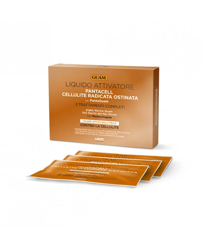 Лосьйон для насичення GUAM PANTA CELL від стійкого целюліту містить наступні активні речовини: екстракти морських водоростей, морську сіль, комплекс антицелюлітних речовин, а також кофеїн, який має ліполітичну дію. Містить фітоколаген, який допомагає підтримувати тонус шкіри, ефективно протидіє проявам в’ялості шкіри.