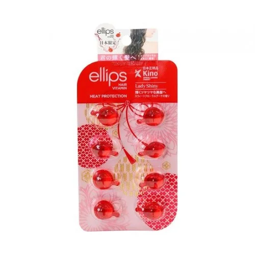 Збагачено маслом камелії, вітамінами A, C, E, Pro Vit B-5 і екстрактом рожевої вишні. Всі ці компоненти відновлюють сухе і ламке волосся, надають гладкість пористим і тьмяним, запобігають появі кінчиків, що січуться. Це дозволяє рідше підстригати волосся і відростити бажану довжину. Капсули Ellips підходять для всіх типів волосся, відрізняються легкою текстурою, моментально вбираються, не склеюють і не обтяжують.