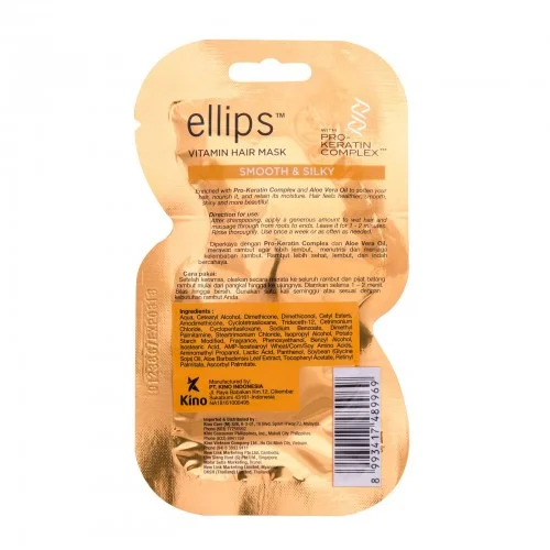 Ellips Vitamin Hair Mask Smooth & Silky зробить ваші пасма блискучими і гладкими немов шовк! Косметичний продукт ефективно відновлює волосся, роблячи його здоровим і доглянутим. Екстракт алое вера позитивно впливає на чутливу шкіру голови, заспокоюючи її і усуваючи подразнення. Тепер ваші локони будуть надійно захищені від негативного впливу навколишнього середовища!