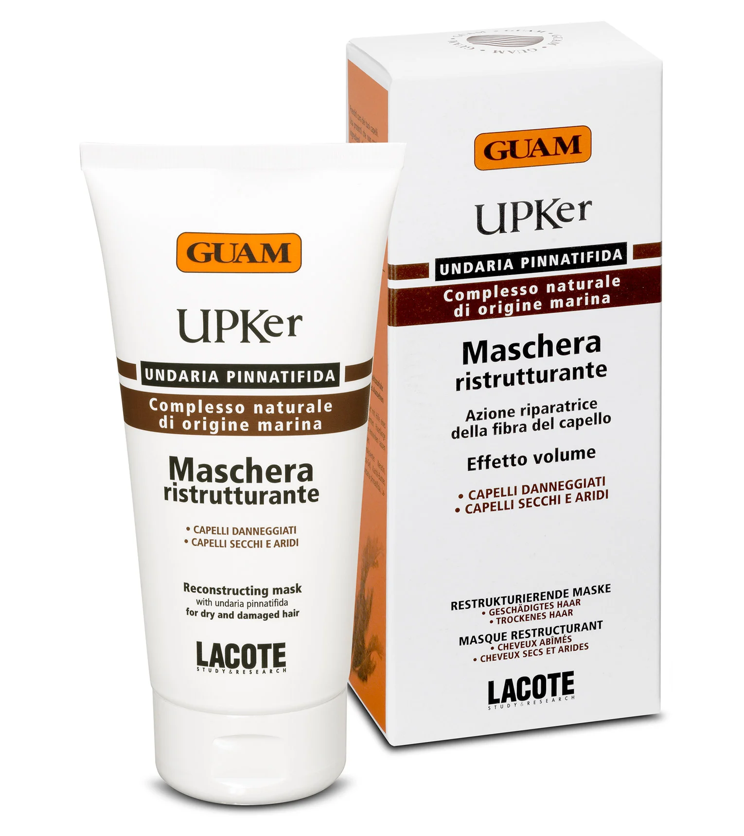Ефект об’єму, глибоке зволоження, натуральний блиск волосся – це те, що ви отримаєте з відновлювальною маскою GUAM UPKer. Відновлювальна маска містить водорості UNDARIA PINNATIFIDA в комплексі з водоростями GUAM, олією карите, аргановою олією та іншими активними компонентами, які мають сильну відновлювальну та живильну дію. Маска забезпечує волоссю необхідне зволоження, легке розчісування та м’якість з ефектом об’єму, надає волоссю шовковистість. Посилює та зберігає блиск волосся, захищає його.