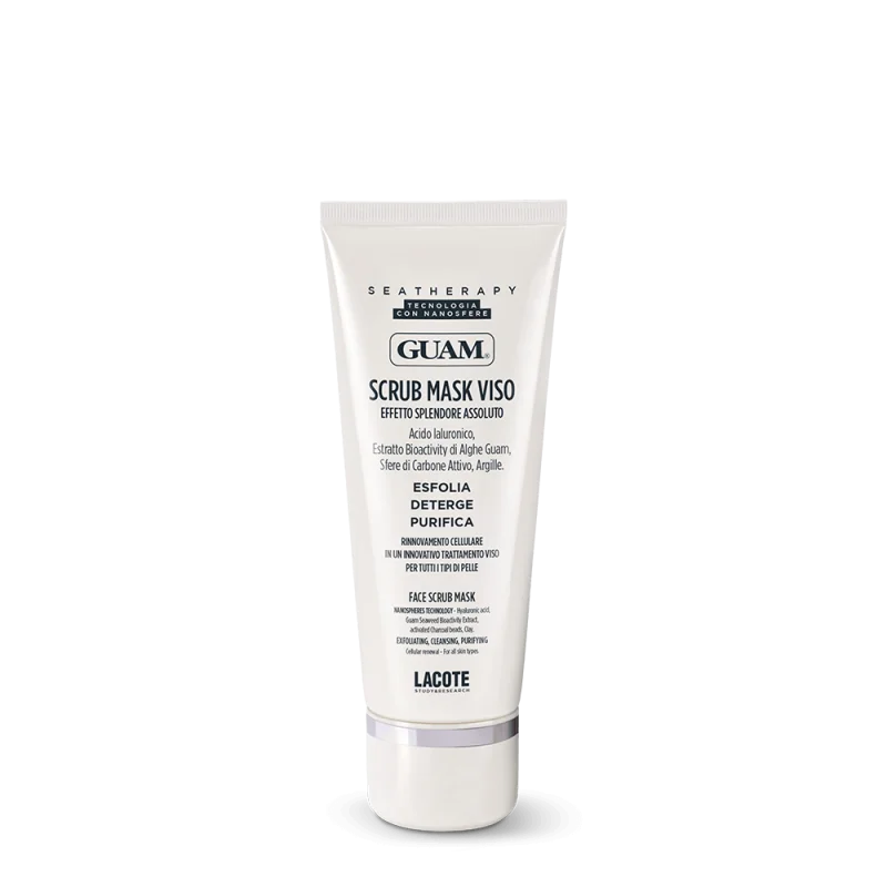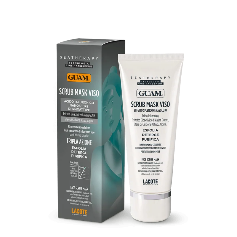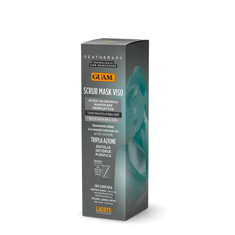 Маска-скраб для обличчя розроблена на основі активних компонентів морського походження. Маска містить сфери з вугіллям рослинного походження, які проявляють свою дію під час легкого масажу обличчя, при цьому засіб набуває злегка сірого кольору. Шкіра обличчя при використанні цього засобу стає відновленою, більш тонізованою та сяйнистою. Обличчя набуває природний яскравий вигляд завдяки комплексній дії Гіалуронової кислоти, біоактивного екстракту водоростей GUAM та мікрочасточок деревного вугілля. Завдяки присутності Дермоактивних наносфер засіб має активну зволожувальну дію. Ці наносфери стимулюють виробництво кератину в найглибших шарах епідермісу, сприяють подвійному зволоженню шкіри як на поверхні, так і в глибині.