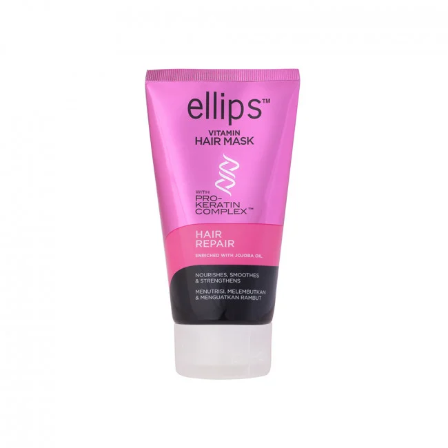 Ellips – дуже відомий індонезійський бренд, який з 1991 року займається розробкою і продажем високоякісної продукції для догляду за волоссям та шкірою голови. Фахівці бренда чудово комбінують між собою досягнення сучасних технологій і природні інгредієнти, що робить косметичні засоби максимально ефективними і такими, що не несуть в собі ніяких шкідливих компонентів, здатних спричинити алергічну реакцію чи подразнення. Ellips Vitamin Hair Mask Hair Repair – маска для волосся, в складі якої присутній про-кератиновий комплекс і олія жожоба, що оздоровлюють локони. Косметичний продукт живить, зволожує і відновлює кожну волосину. Засіб також чудово захищає волосся від негативного впливу навколишнього середовища, зберігаючи його природний блиск і еластичність.