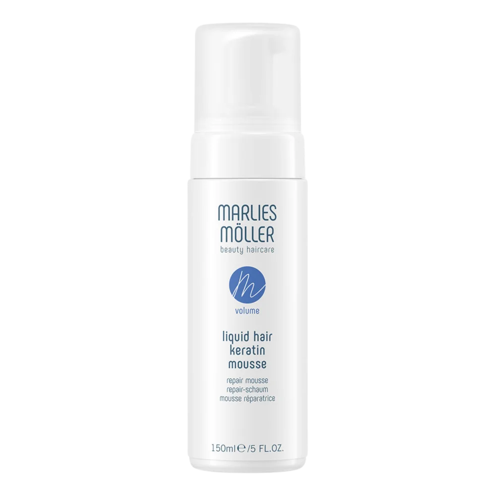Marlies Moller Liquid Hair Keratin Mousse - мус, що додає обсягу, з ефектом відновлення. Засіб проникає кутикулу та кортекс волосся, відновлюючи структуру зсередини. Волосся ущільнюється, стає сильнішим, здоровішим, гладкішим. Мус не обтяжує пасма, надає їм блиску, сприяє легкому розчісування. Створює негайне та видиме відновлення структури пошкодженого волосся. Навіть тонке волосся набуде об'єму і сили!