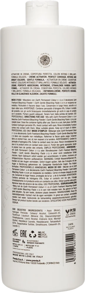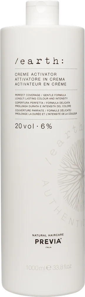 Проявник для фарби. У поєднанні з фарбами для волосся від Previa Earth допомагає створити відтінки, які ідеально підходять для покриття першого сивого волосся. Також для відновлення чутливого або вже обробленого волосся.