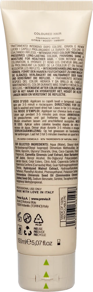 Інтенсивний догляд для фарбованого волосся. Проникає глибоко, зволожує волосся, збільшує тривалість стійкості кольору, підсилює блиск.