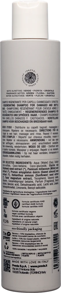 - Екстракти солодкого мигдалю, сої, насіння проса та насіння соняшника — виконують зволожувальну і захисну дію, підвищують еластичність. Зміцнюють волосся, надаючи йому м'якості та блиску.