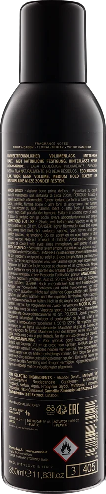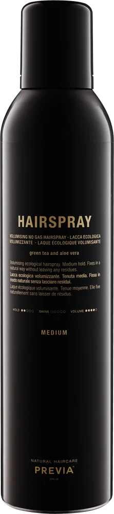 Еколак для надання об'єму. Середня фіксація. Ідеальний для створення текстури та природних образів. Збільшує об'єм волосся та дарує йому м'якість. Залишає волосся рухливим, не обтяжує його і не залишає слідів. Швидко висихає. Легко видаляється з волосся.