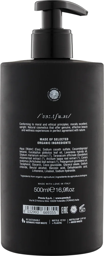 М'яко очищає шкіру рук та забезпечує їй захист. Органічні екстракти лопуха, кульбаби і артишоку надають делікатну заспокійливу дію. Есенціальні олії евкаліпта, лаванди та герані освіжають шкіру.