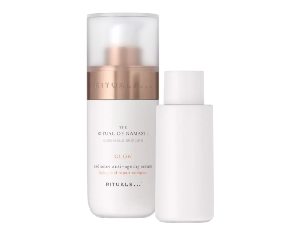 Интенсивная сыворотка восстанавливает природное сияние и минимизирует первые признаки старения благодаря комплексу Bakuchiol Repair Complex. Ритуал сыворотки против старения Namaste Придайте своей коже сияние и боритесь с первыми признаками старения днем и ночью с помощью этой сыворотки от The Ritual of Namaste. Продукт содержит наш новый уникальный восстановительный комплекс Bakuchiol. Он возвращает коже молодой вид, уменьшая видимость тонких линий и морщин, а также увлажняет кожу, делая ее сияющей. 97% ингредиентов натурального происхождения, 3% изготовлены в лаборатории для обеспечения должной консистенции и стабильности продукта увлажнение для сияющей кожи минимизация тонких линий и морщин быстро впитывается для всех типов кожи, даже чувствительной дерматологически протестированный продукт