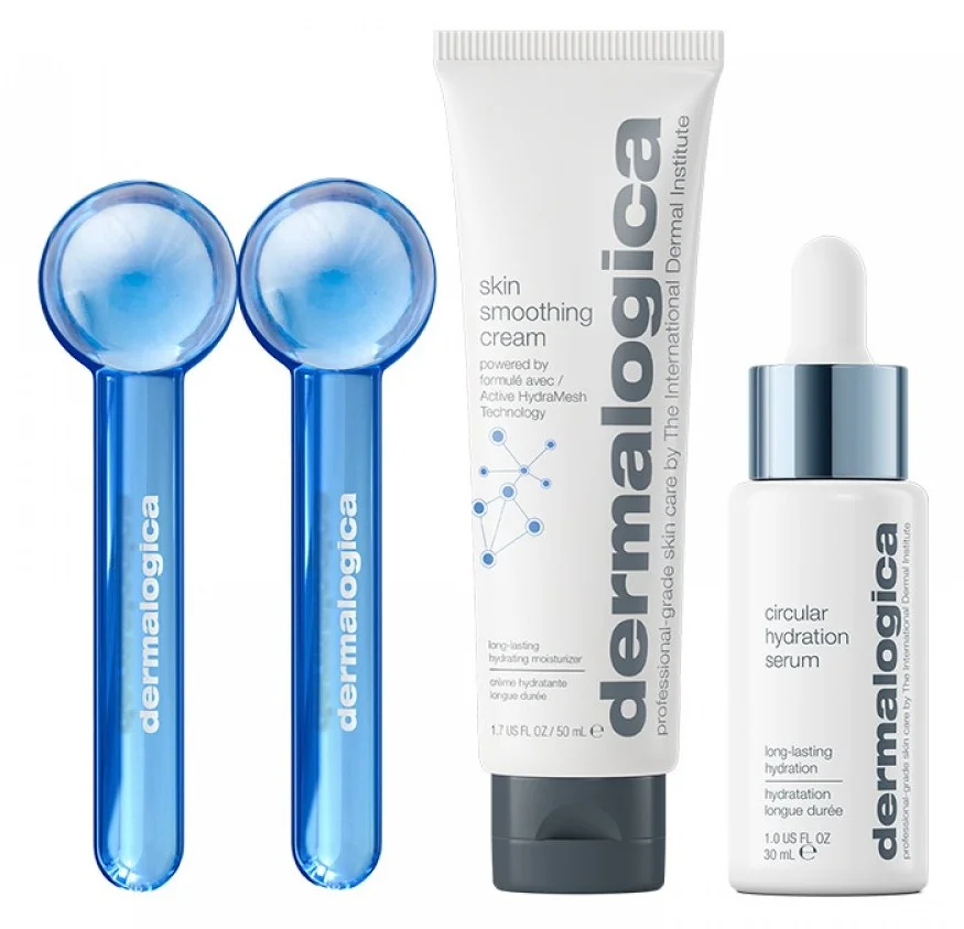 Увлажняющий набор смягчает обезвоженную кожу и поддерживает длительное увлажнение. Начните цикл увлажнения и восстановите кожу изнутри с помощью Circular Hydration Serum. Добавьте наш бестселлер для разглаживания кожи, чтобы сохранить увлажненность на весь день. Охлаждайте сферы для еще более эффективного ухода и массажных техник на дому. В наборе:  Circular Hydration Serum 30 мл; Skin Smoothing Cream 50 мл; Охлаждающая сфера для лица в подарок.