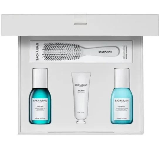 В наборе: Укрепляющий шампунь для объема и плотности волос, 100 мл: с использованием технологии Ocean Silk и натуральными растительными протеинами придаст вашим волосам объем и укрепит их изнутри. Укрепляющий кондиционер для объема и плотности волос, 100 мл: увлажняет, защищает и распутывает локоны, делает их послушными и плотными без эффекта отягощения. Маска для восстановления волос Deluxe, 30 мл: способствует регенерации клеток, придает волосам жизненную силу и прочность, волосы становятся шелковистыми и чрезвычайно послушными. Расческа SachaJuan: разработана с нейлоновыми щетинами для того, чтобы мягко распутывать волосы и массировать кожу головы, делая волосы мягкими и блестящими. Способ использования: Умастите небольшое количество шампуня во влажные волосы. Тщательно смойте, затем воспользуйтесь маской для волос. Маску нанесите на кончики, аккуратно расчешите волосы и оставьте на 5-10 минут. Затем нанесите кондиционер и сновааккуратно расчешите. Оставьте на 1-2 минуты, затем тщательно промойте.