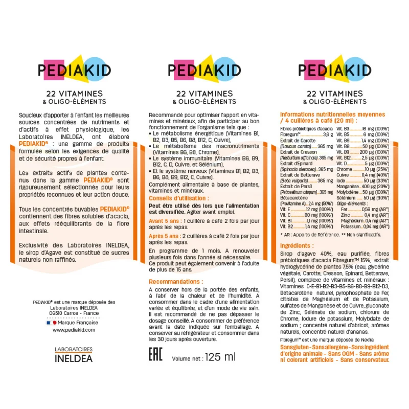 PEDIAKID 22 ВІТАМІНА ТА ОЛІГОЕЛЕМЕНТА СИРОП / 22 VITAMINES ET OLIGO-ÉLÉMENTS SIROP, 125 мл