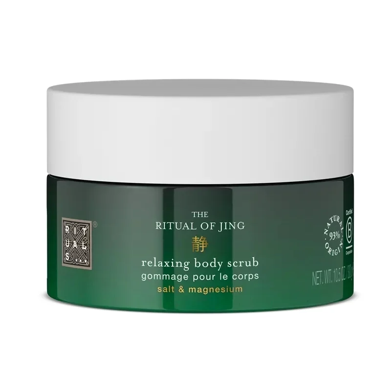 Подаруйте собі чудовий розслаблюючий відлущуючий догляд за допомогою нового пілінгу з колекції The Ritual of Jing. Цей сольовий скраб, що на 92% складається з натуральних інгредієнтів, містить магній і багату суміш для створення формули, яка ретельно видаляє омертвілі клітини шкіри та зволожує шкіру. Магній добре відомий своїми антистресовими властивостями. Це також допомагає підтримувати баланс шкіри та підтримувати її хороший фізичний стан. Сольовий пілінг стимулює оновлення клітин шкіри, допомагає вирівняти тон шкіри та дозволяє кремам і маслам, нанесеним пізніше, проникнути глибше в шкіру. Втирайте в шкіру круговими рухами та насолоджуйтесь розслаблюючим ароматом лотоса та зизифуса. Завершіть свою процедуру сухим маслом або кремом для тіла Ritual of Jing, що складається з 92% ретельно відібраних інгредієнтів натурального походження, щоб надати вашій шкірі оптимальні переваги.