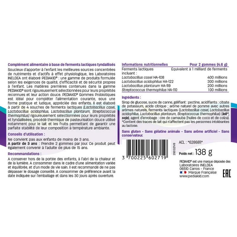 PEDIAKID НАТУРАЛЬНІ ВЕДМЕЖУЙКИ ПРОБІОТИКИ / GOMMES PROBIOTIQUES, 60 жувальних вітамінів