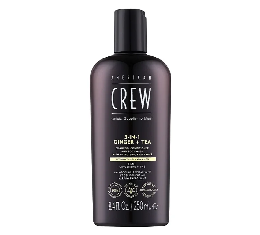 Особливості American Crew Official Supplier To Men 3 In 1 Ginger + Tea Shampoo Conditioner And Body Wash: